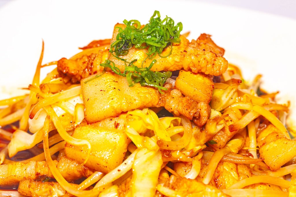 stir fried pork belly with bean sprouts